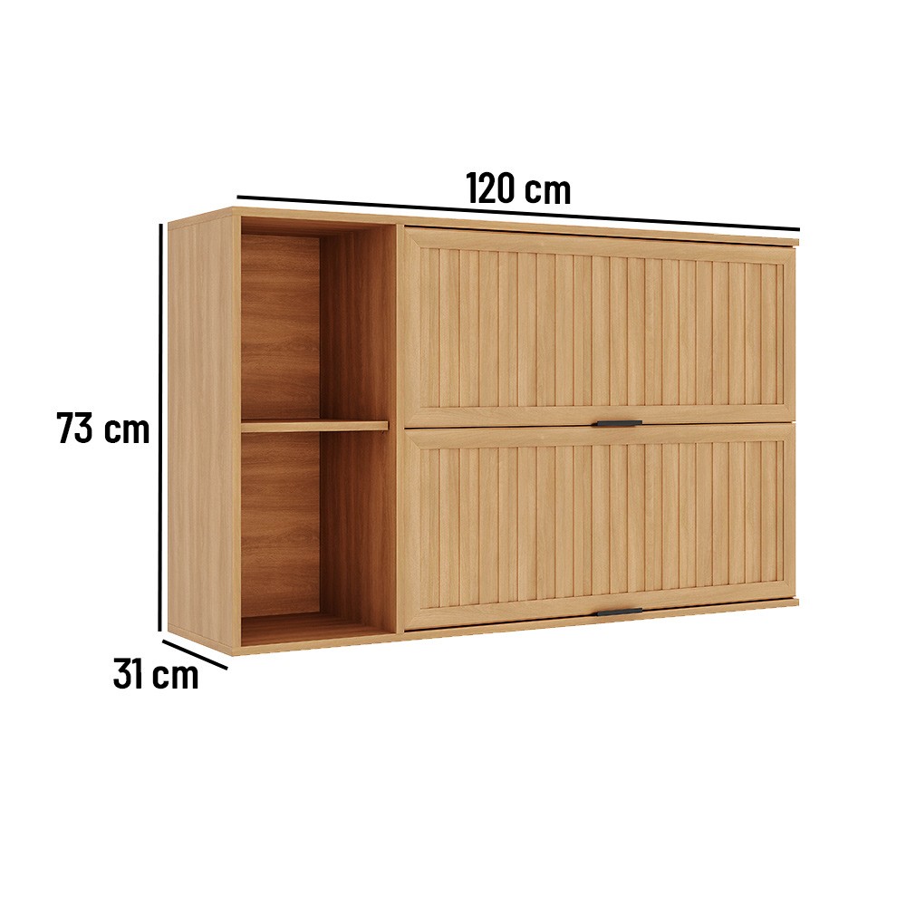Armário Aéreo Castanha 1200MM Com 2 Portas Ripadas - Freijó e Cinza