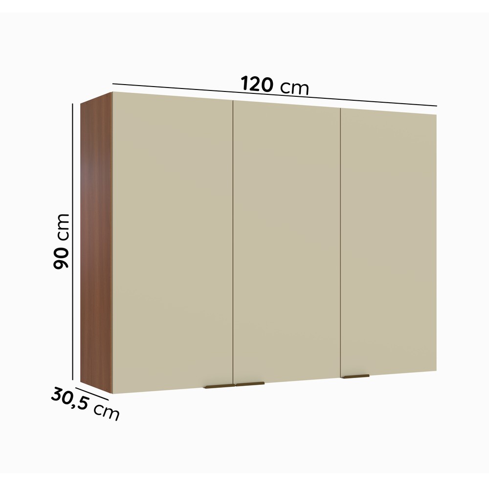 Armário Aéreo Lumina 1200MM 3 Portas Arenas/Freijó