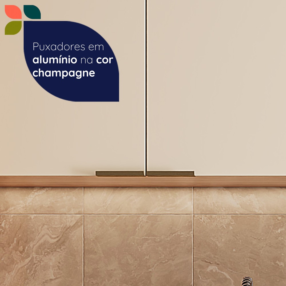 Puxadores Slim: Produzidos em alumínio, eles garantem ergonomia e um toque refinado ao design.