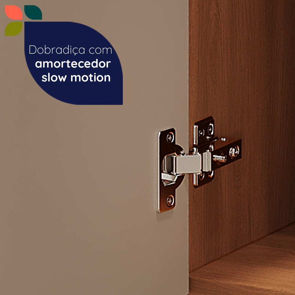 Abertura Suave e Silenciosa: As dobradiças com amortecimento tornam o fechamento leve e confortável, proporcionando maior durabilidade ao móvel.