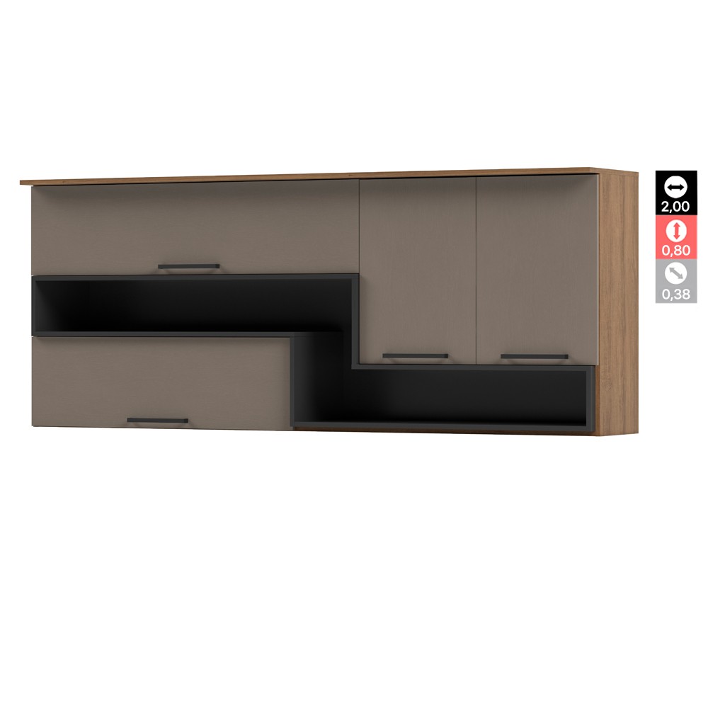 Armário de Cozinha Aéreo Telasul Caiena 200 cm Mel/Fumê