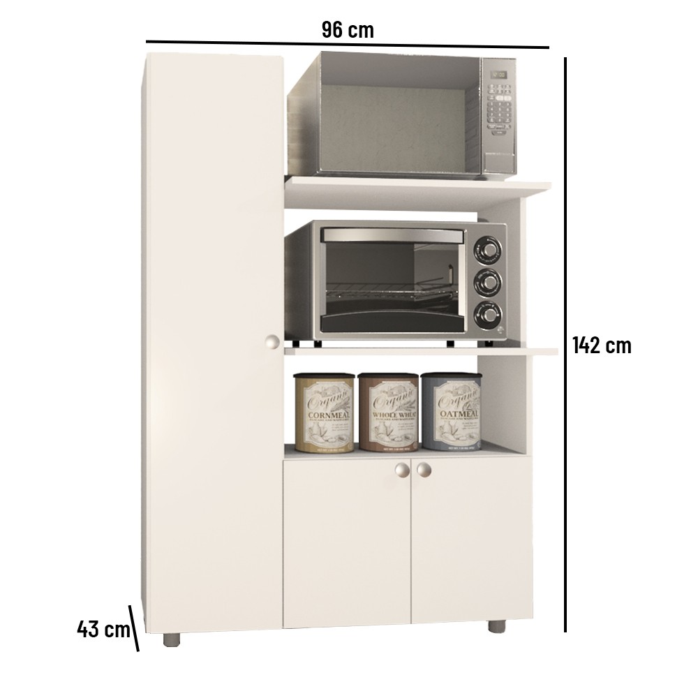 Se você está à procura de um móvel versátil, compacto mas muito completo: conheça o Armário Multiuso Âmbar. Esta é uma excelente opção para ampliar espaços e caprichar na organização. Produzido em MDP e com ótimo acabamento, oferece diversos compartimentos para a acomodação de itens, incluindo espaços para forno e micro-ondas e itens decorativos. Resistente e prático, esse é um móvel indispensável na organização da casa e que vai garantir um charme a mais na sua cozinha.