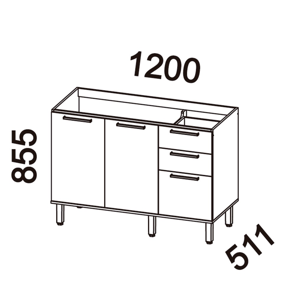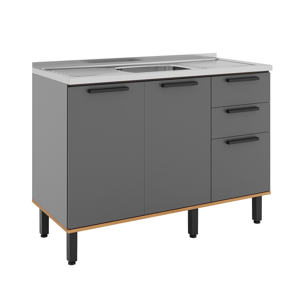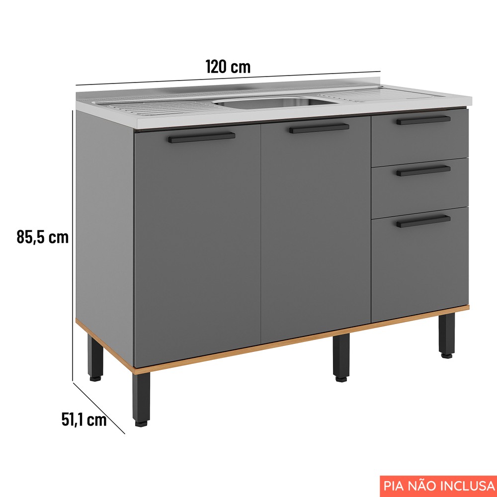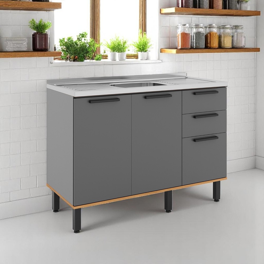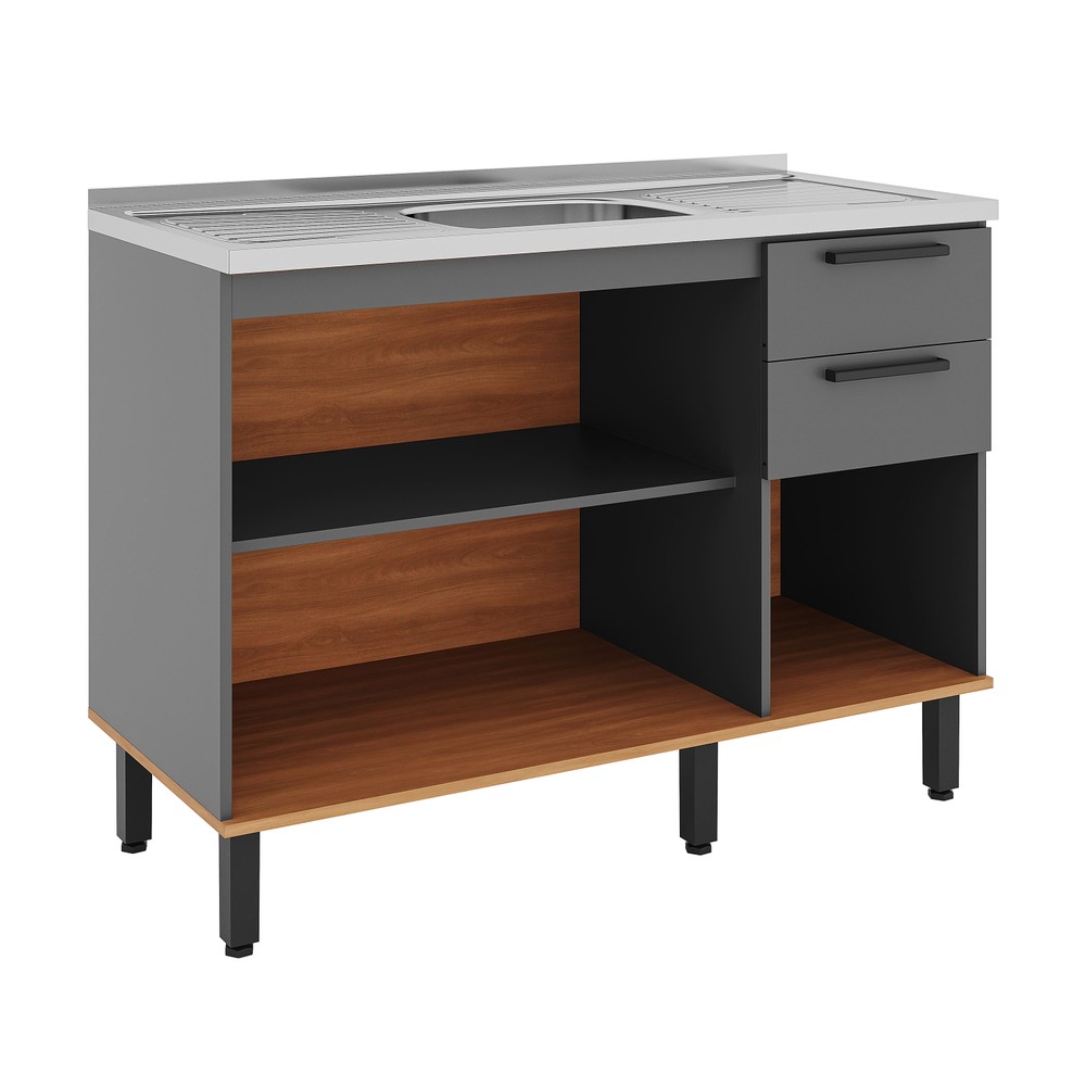 Balcão Castanha 1200mm S/Tam 3pt 2gv Cinza/Freijó