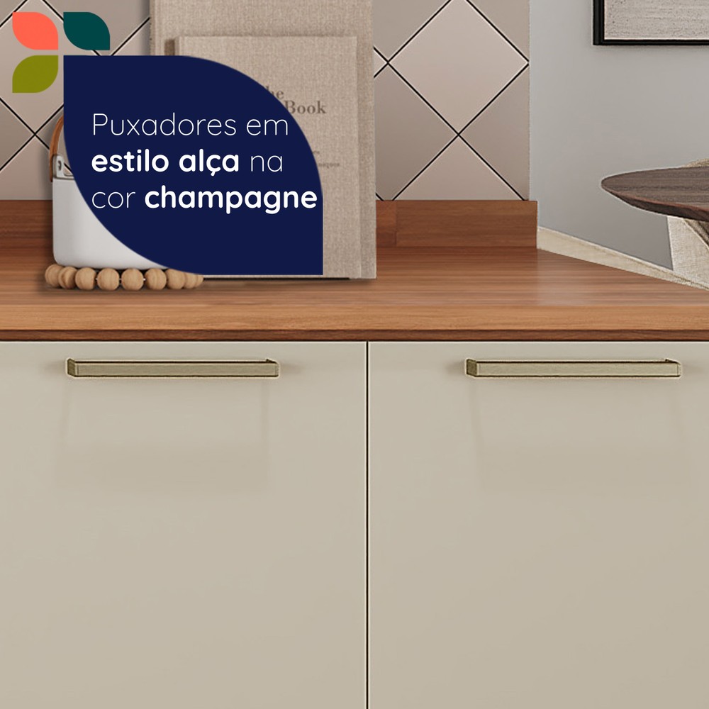 Dê um toque especial à sua cozinha com esse prático e bonito Balcão Castanha. Um móvel modulado que oferece toda a sofisticação e qualidade para facilitar a rotina. Combinando a elegância da cor Arenascom o aconchego do tom amadeirado Freijó, é um módulo perfeito para quem busca espaço de organização e praticidade em um produto realmente resistente.
