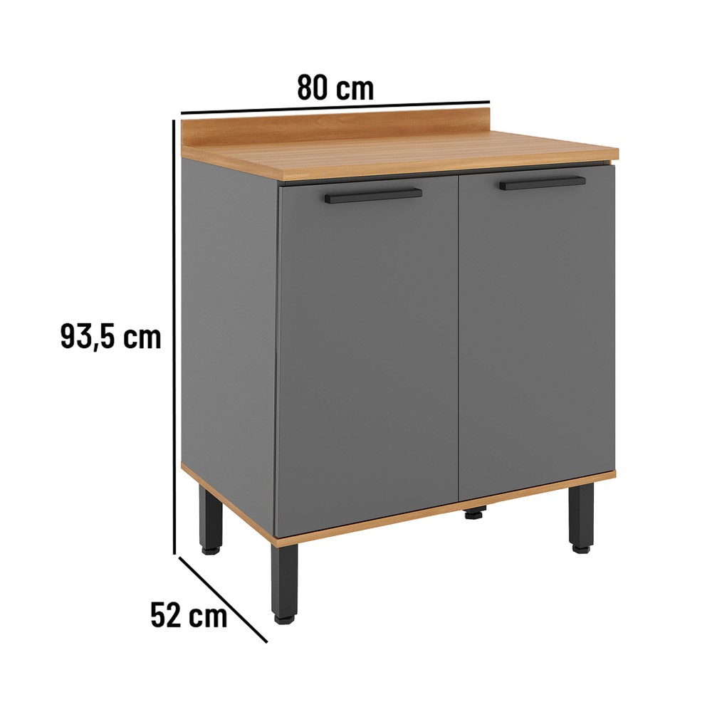 Balcão de Cozinha Castanha 800MM Com Tampo - Freijó e Cinza