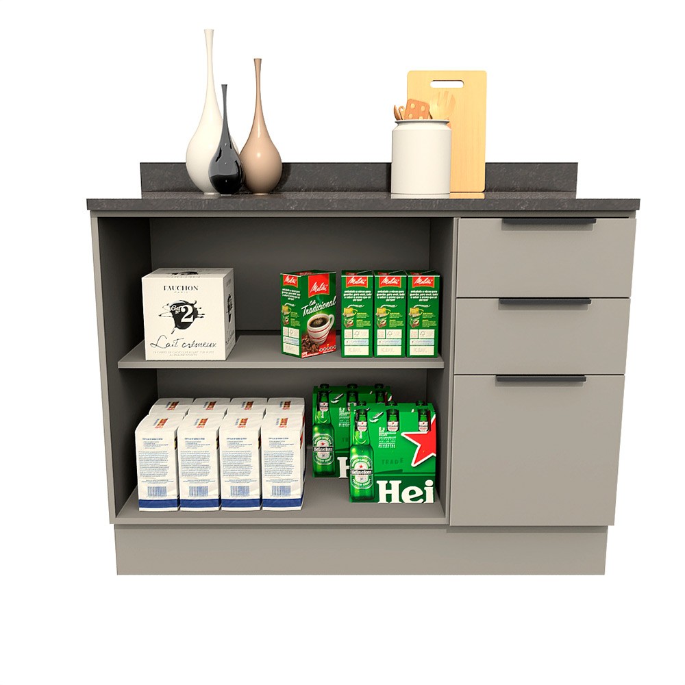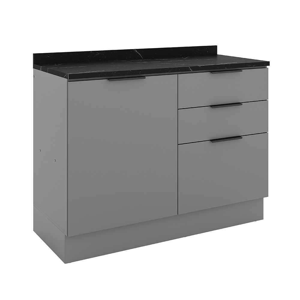 Balcão de Cozinha Lumina 1200mm Com Rodapé e Tampo 1 Porta e 3 Gavetas Cinza/Cinza