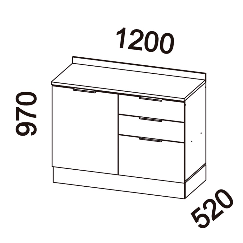 1200mm (L) X 970mm (A) X 520mm (PROF)