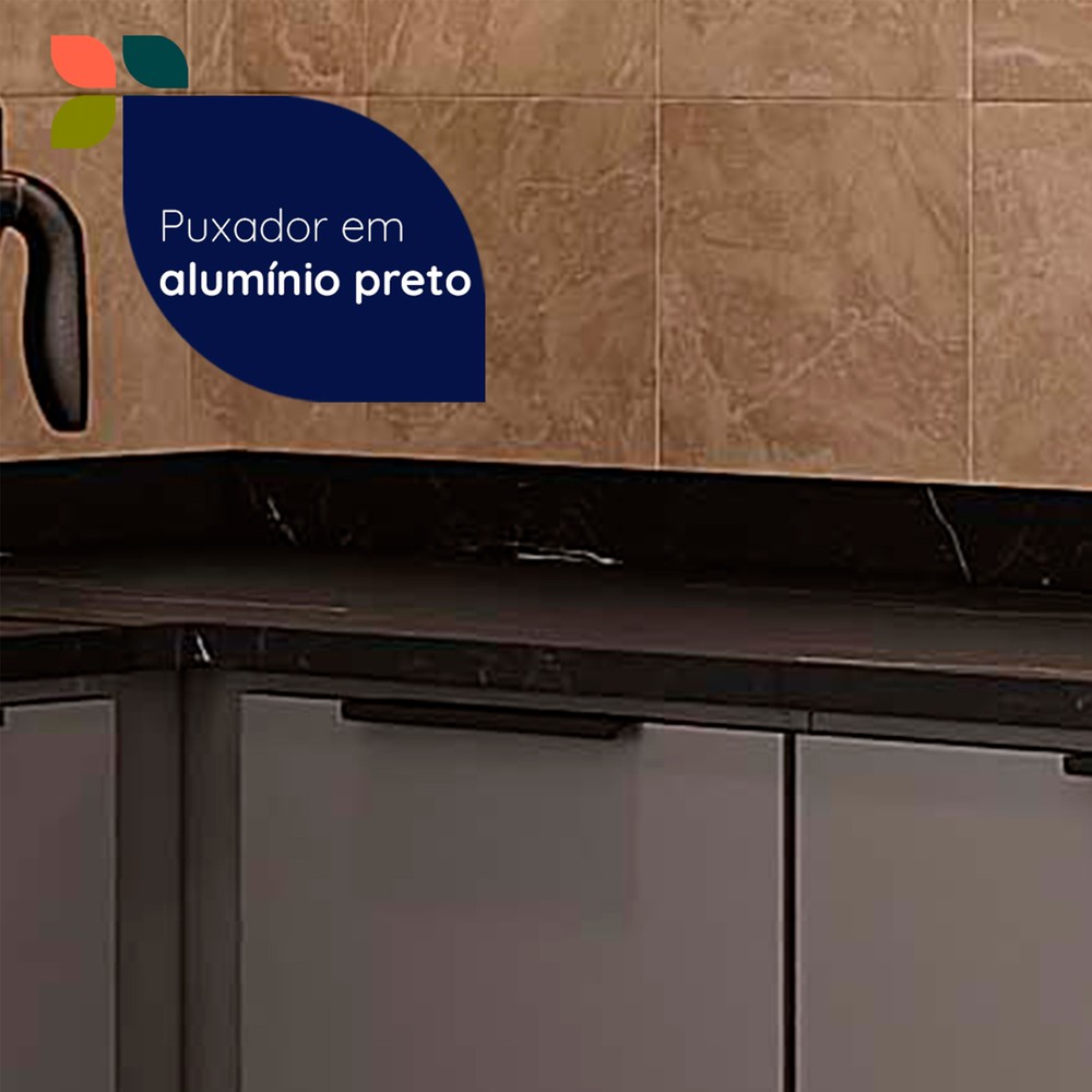 Balcão Lumina 950mm de Canto C/Rod C/Tam 1pt Cinza/Cinza