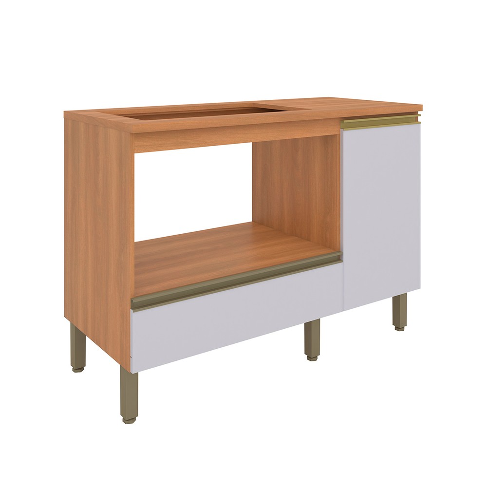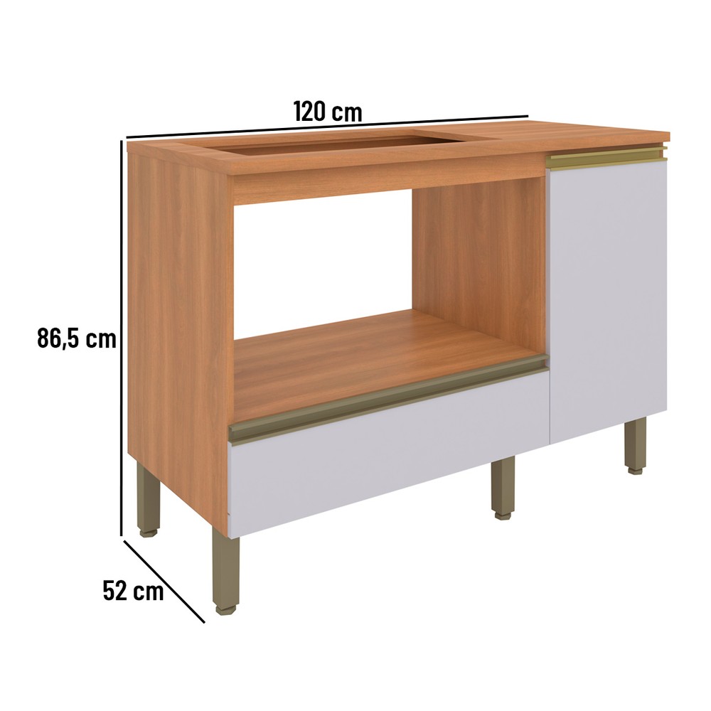O Balcão Cooktop Macadâmia é uma bela e funcional opção para ampliar o espaço e garantir mais funcionalidade no coração da casa. Produzido em MDP, é um módulo muito robusto, com ótimo acabamento e acessórios de qualidade. Versátil para todas as composições, esse balcão é equipado com ampla gaveta com corrediça metálica - para um deslizar mais suave. Também possui espaço fechado para acomodação de mantimentos e acessórios da cozinha, e aqui a porta contém dobradiças com amortecimento, para um movimento leve e sem ruídos. Além disso, conta com área reservada para acomodação de forno ou micro-ondas, deixando-o à mão para melhor atender a correria da rotina. O puxador em estilo perfil, no tom Champagne, harmoniza perfeitamente com a sofisticada combinação de cores da porta e caixaria. Um móvel perfeito para a organização da casa e que vai garantir um charme a mais na sua cozinha.
