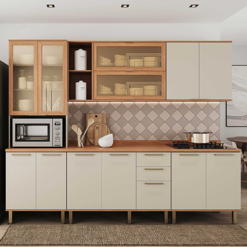 Cozinha Castanha 5 Peças 4 Portas com Vidro para Micro-Ondas - Arenas/Freijó