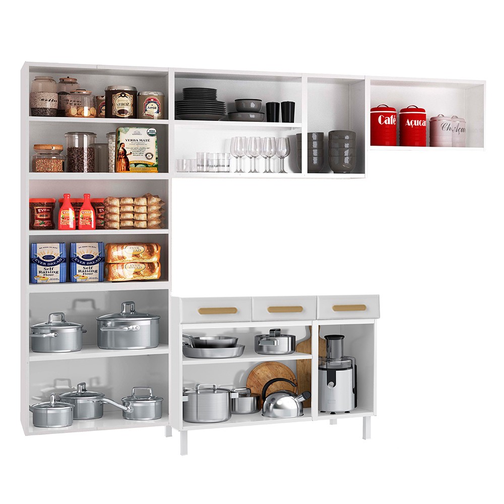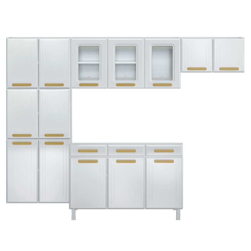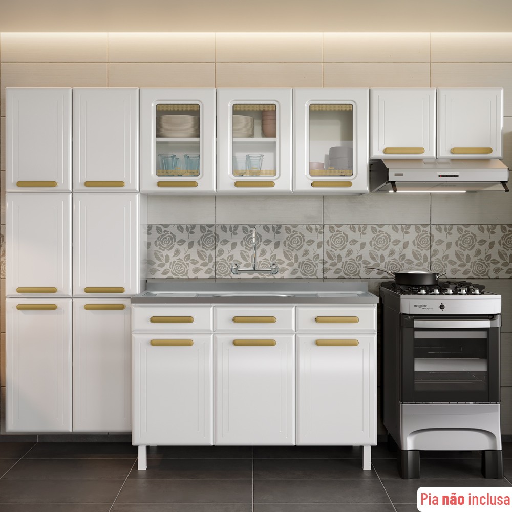 Cozinha de Aço Completa Telasul Ágata Branco 3 Vidros Com Balcão Para Pia