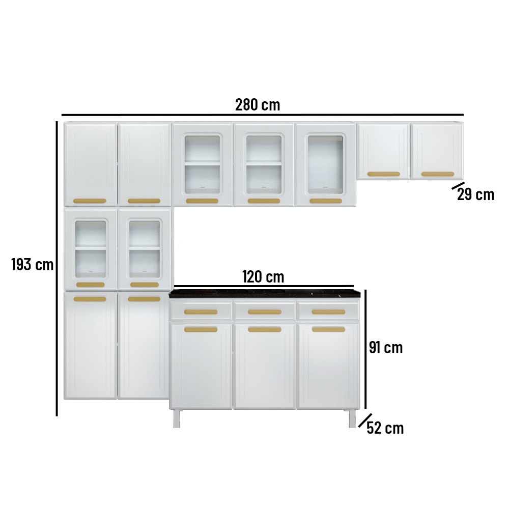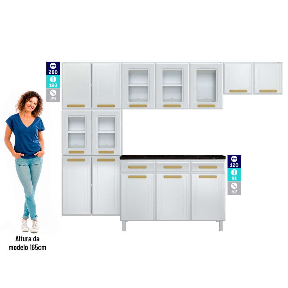Cozinha de Aço Completa Telasul Ágata 5 Vidros Com Balcão