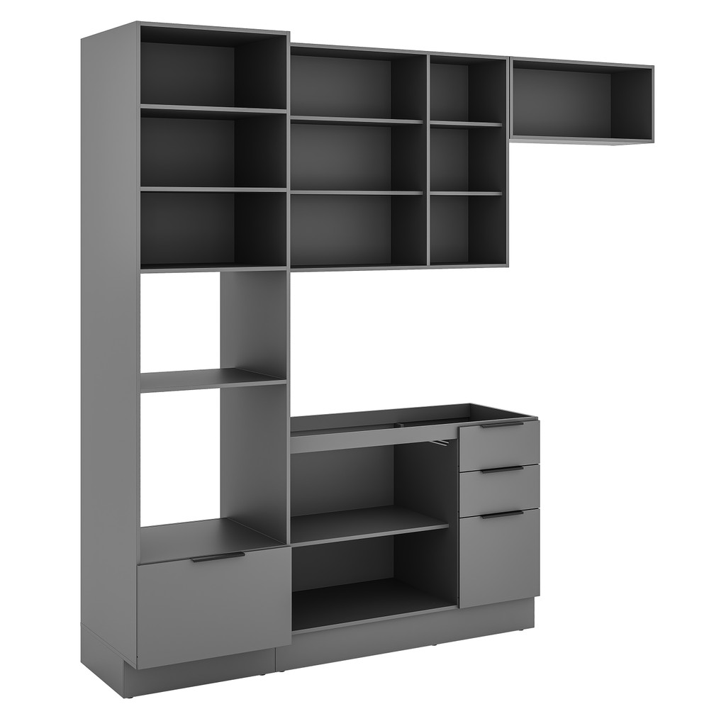 Cozinha Telasul Lumina 4 Peças Com Paneleiro para Forno e Micro 7 Portas e 4 Gavetas S/ Tampo Cinza/Lacca