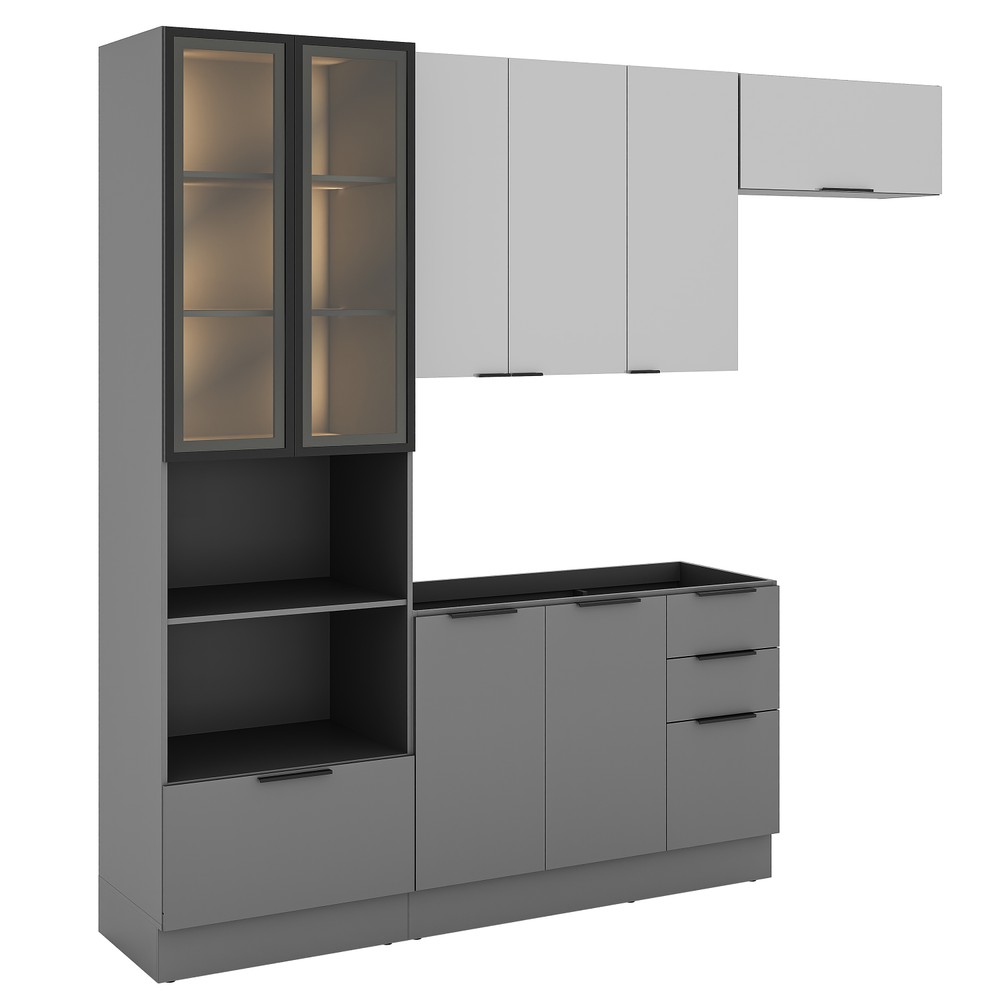 Cozinha Telasul Lumina 4 Peças Com Paneleiro para Forno e Micro Com Vidro fumê e Iluminação S/ Tampo Cinza/Lacca
