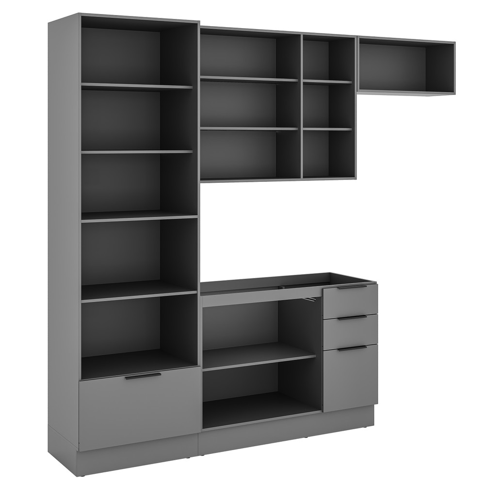 A cozinha Lumina foi pensada para unir design contemporâneo e funcionalidade em um conjunto elegante e versátil. Com 2,40 m de altura, apresenta acabamento em lacca, rodapé em PVC e um visual sofisticado, destacado pelo contraste entre o cinza intenso da estrutura e o cinza claro das portas. Composta por quatro módulos, oferece excelente aproveitamento interno e flexibilidade de composição, facilitando a organização e a adaptação do conjunto a diferentes projetos de cozinha. Os acabamentos reforçam a qualidade do móvel, com dobradiças de 35 mm com amortecimento, corrediças telescópicas com extração total e puxadores slim em alumínio preto, que evidenciam o estilo moderno. O paneleiro conta com espaço para forno e micro-ondas e portas de vidro fumê com iluminação interna integrada, agregando sofisticação, funcionalidade e valorizando o ambiente. A cozinha Lumina é ideal para quem busca elegância, qualidade e praticidade, com pronta entrega para transformar sua cozinha com rapidez.