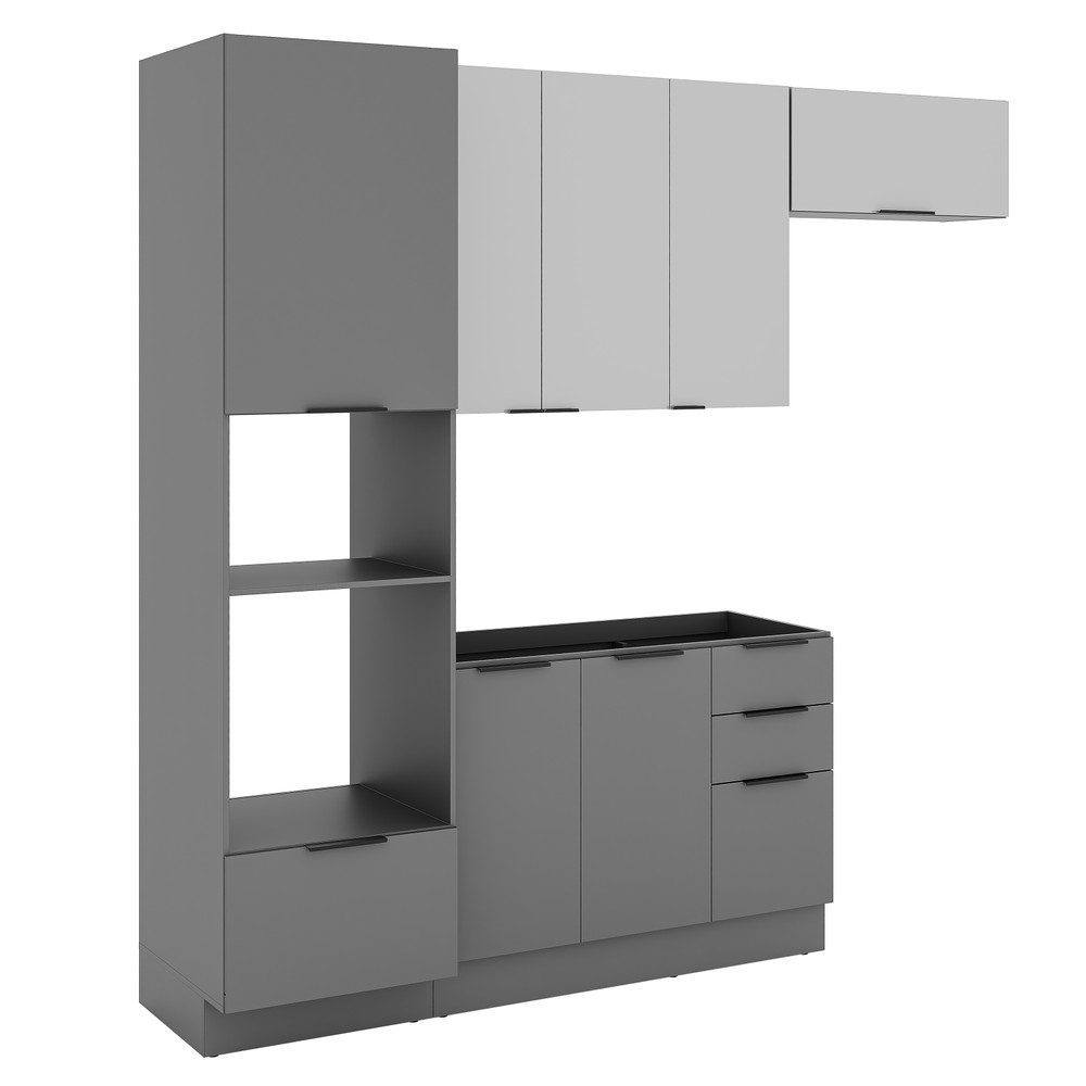 Cozinha Telasul Lumina 4 Peças Com Paneleiro para Forno e Micro 7 Portas e 4 Gavetas S/ Tampo Cinza/Lacca