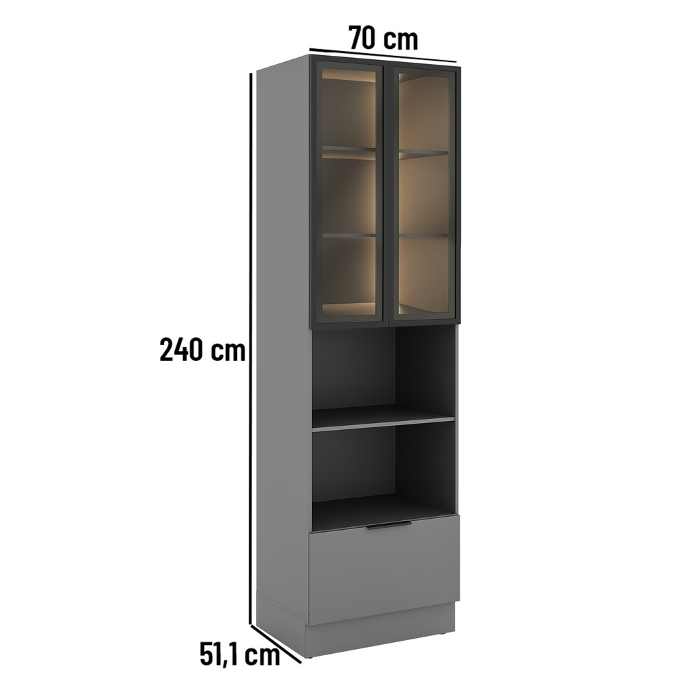 Leve mais estilo e praticidade para sua cozinha com o Paneleiro Lumina 700MM! Com 2,40 metros de altura, esse móvel une um design contemporâneo ao acabamento em cinza e rodapé resistente, garantindo durabilidade e charme. Equipado com duas portas de vidro com iluminação embutida na parte superior e uma gaveta na parte inferior, proporciona organização eficiente para mantimentos, louças, acessórios e utensílios variados. Conta com dois espaços planejados para acomodar forno e micro-ondas, tornando o ambiente ainda mais funcional. Aproveitando todo o espaço vertical disponível, este paneleiro é a escolha ideal para combinar elegância e praticidade no seu dia a dia.