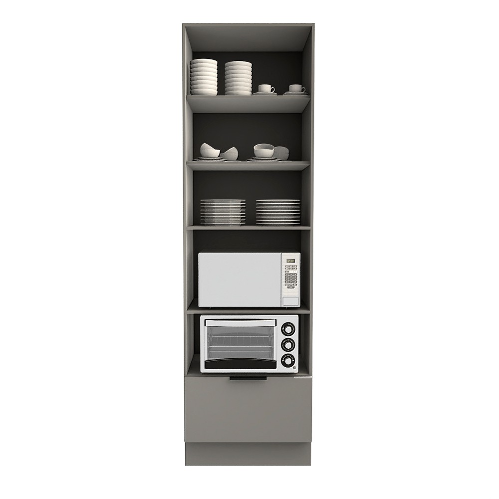 Paneleiro De Cozinha Lumina 700mm com Iluminacão e Com Rodapé Para Micro e Forno 2 Portas Com Vidro e 1 Gaveta Cinza/Cinza