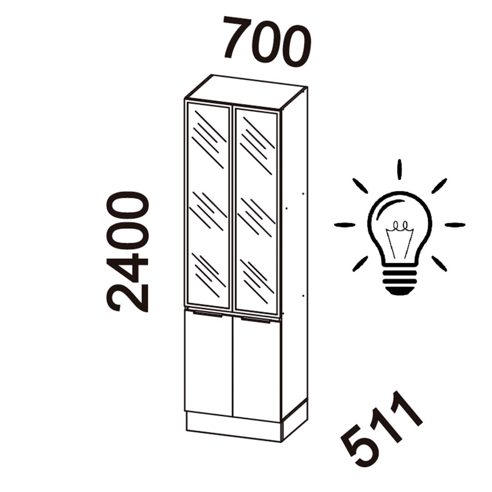 Transforme sua cozinha com o Paneleiro Lumina 700MM! Com 2,40 metros de altura, ele aproveita ao máximo o espaço vertical, oferecendo amplo armazenamento. Suas quatro portas, incluindo duas com vidro na parte superior com iluminação embutida, agregam elegância e funcionalidade ao organizar mantimentos, louças e acessórios. O design moderno, aliado ao acabamento em cinza e ao rodapé, garante um toque de estilo e versatilidade para sua cozinha.